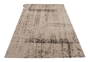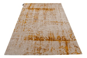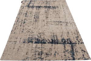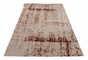Dit unieke effect ontstaat door het schilderen op doek waarbij zand in de kwast werd gebruikt, wat resulteerde in intrigerende horizontale en verticale strepen. Het resultaat is een opvallend en artistiek vloerkleed dat elke ruimte transformeert en een avant-gardistische touch toevoegt aan je interieur.